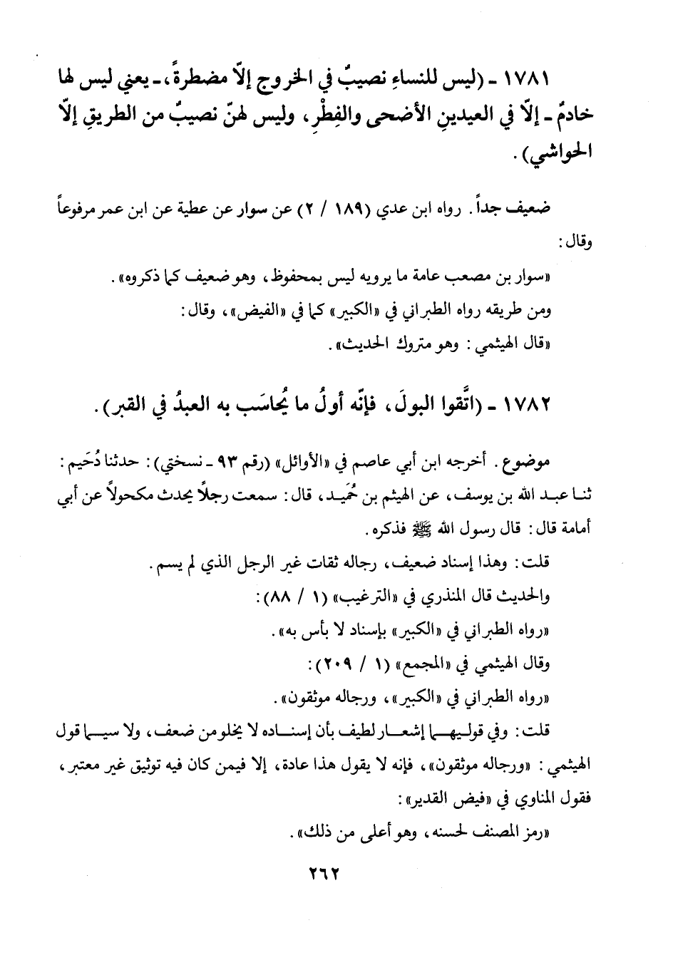 1782 - " اتقوا البول، فإنه أول ما يحاسب به العبد في القبر ".