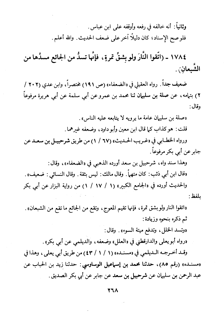 1784 - " اتقوا النار ولوبشق تمرة، فإنها تسد من الجائع مسدها من الشبعان ".