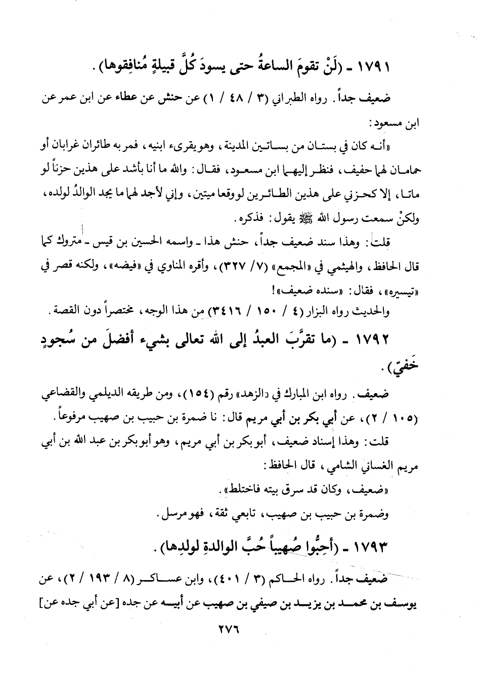1792 - " ما تقرب العبد إلى الله تعالى بشيء أفضل من سجود خفي ".