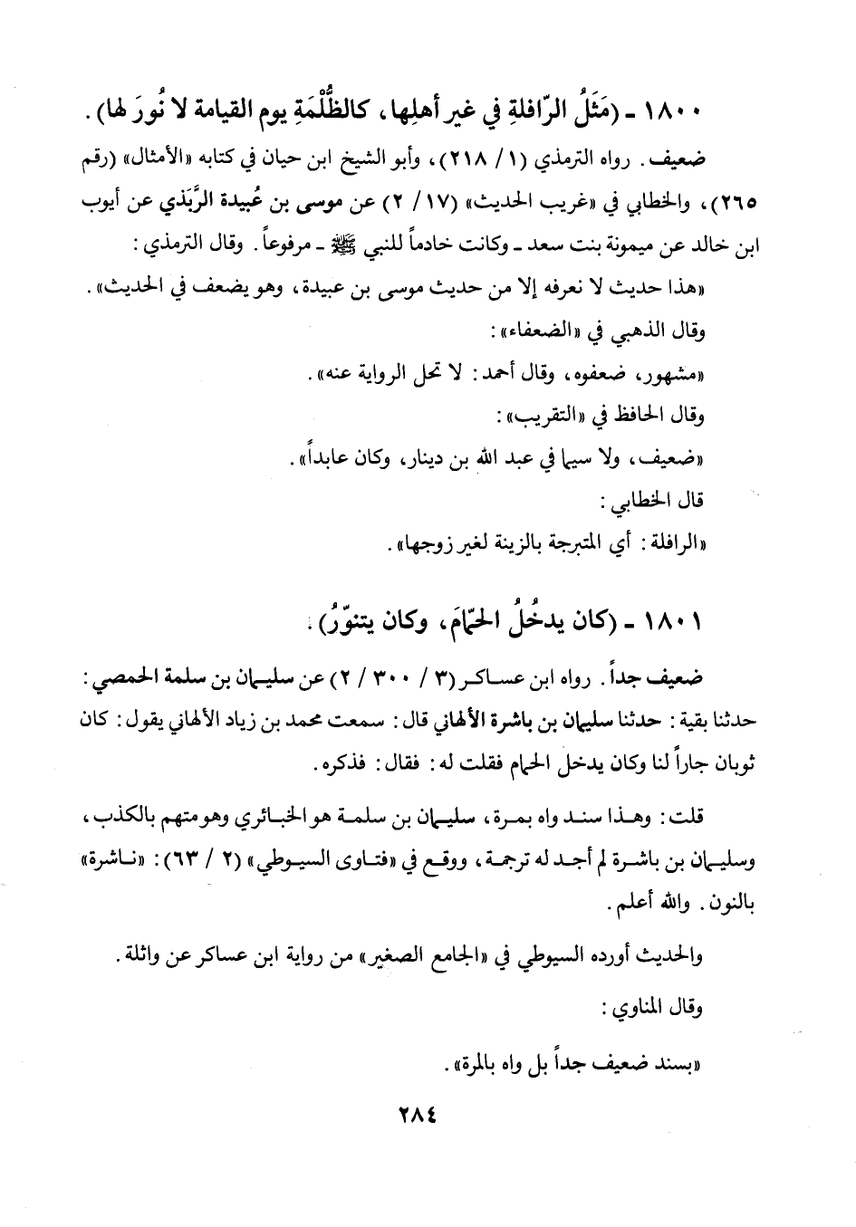 1801 - " كان يدخل الحمام، وكان يتنور ".