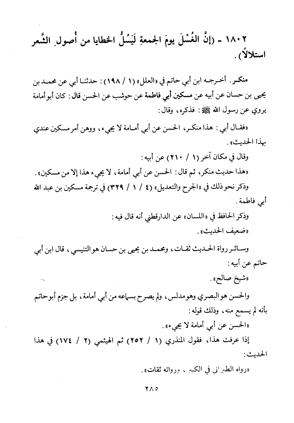 1802 - " إن الغسل يوم الجمعة ليسل الخطايا من أصول الشعر استلالا ".