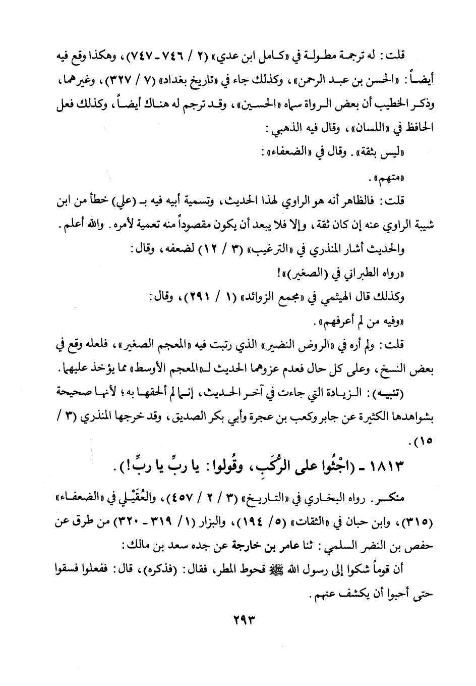 قلت: له ترجمة مطولة في " كامل ابن عدي " (2 / 746 - 747) وهكذا وقع فيه أيضا: " الحسن بن عبد الرحمن "، وكذلك جاء في " تاريخ بغداد " (7 / 327) وغيرهما، وذكر الخطيب أن بعض الرواة سماه " الحسين "، وقد ترجم له هناك أيضا، وكذلك فعل الحافظ في " اللسان "، وقال فيه الذهبي: " ليس بثقة ". وقال في " الضعفاء ": " متهم ". قلت: فالظاهر أنه هو الراوي لهذا الحديث، وتسمية أبيه فيه بـ (علي) خطأ من ابن شيبة الراوي عنه إن كان ثقة، وإلا فلا يبعد أن يكون مقصودا منه تعمية لأمره. والله أعلم.