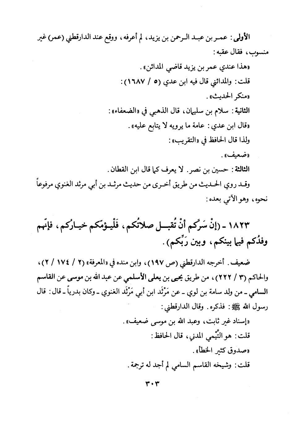 1823 - " إن سركم أن تقبل صلاتكم، فليؤمكم خياركم، فإنهم وفدكم فيما بينكم، وبين ربكم ".
