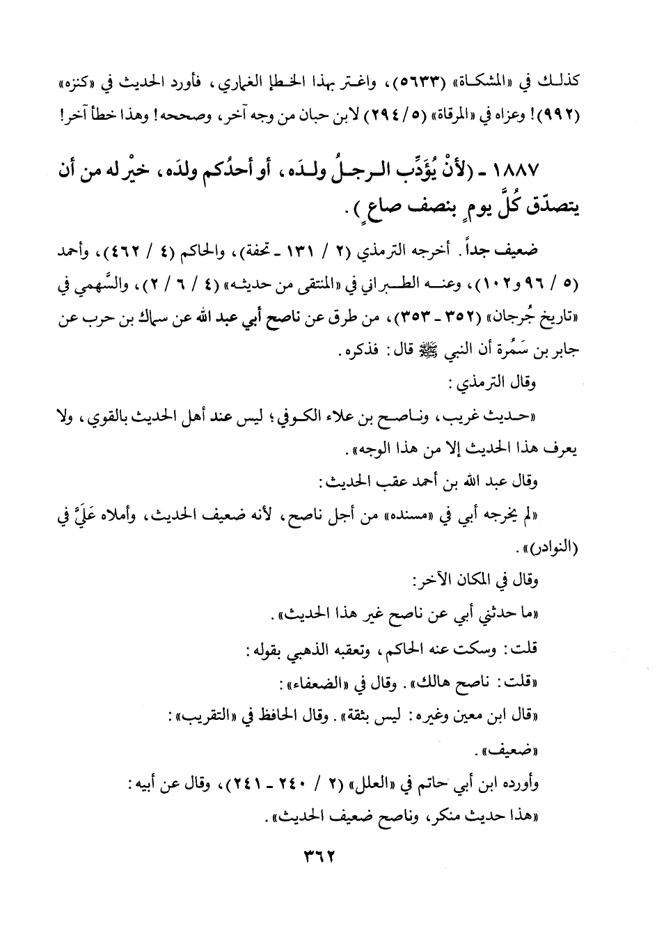 1887 - " لأن يؤدب الرجل ولده، أوأحدكم ولده خير له من أن يتصدق كل يوم بنصف صاع ".