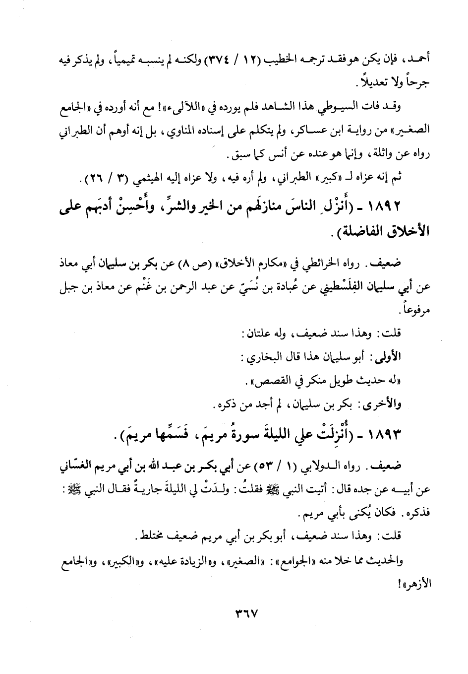 1893 - " أنزلت علي الليلة سورة مريم، فسمها مريم ".