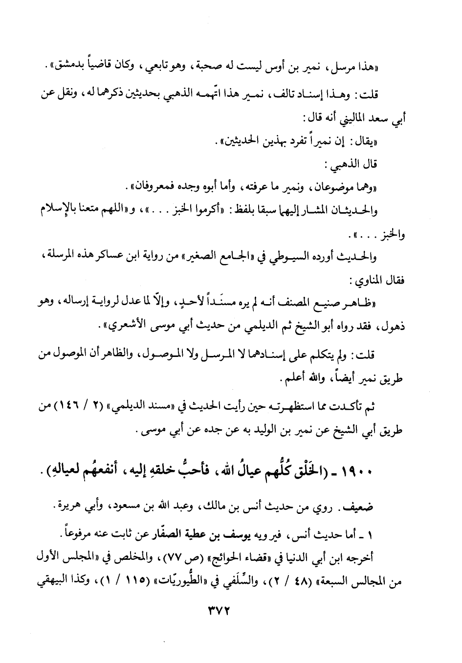 1900 - " الخلق كلهم عيال الله، فأحب خلقه إليه، أنفعهم لعياله ".