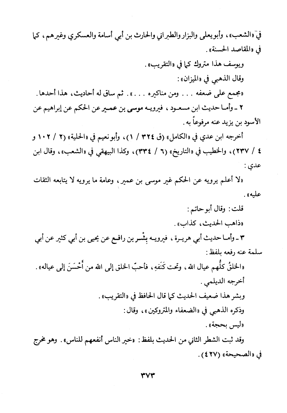 عدي: " لا أعلم يرويه عن الحكم غير موسى بن عمير، وعامة ما يرويه لا يتابعه