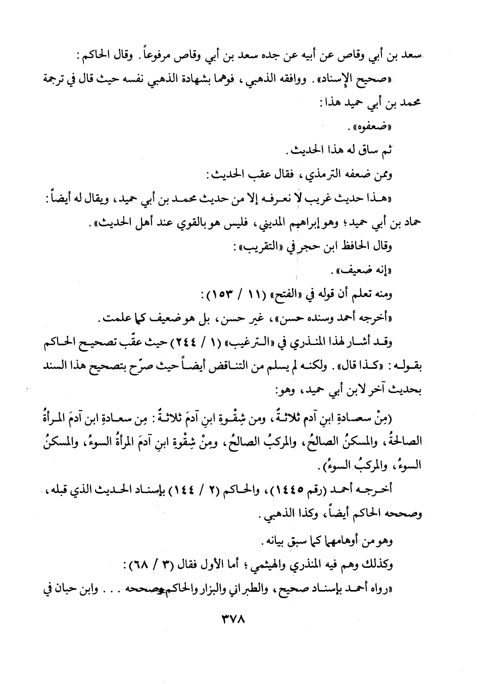حيث صرح بتصحيح هذا السند بحديث آخر لابن أبي حميد، وهو: (من سعادة ابن آدم