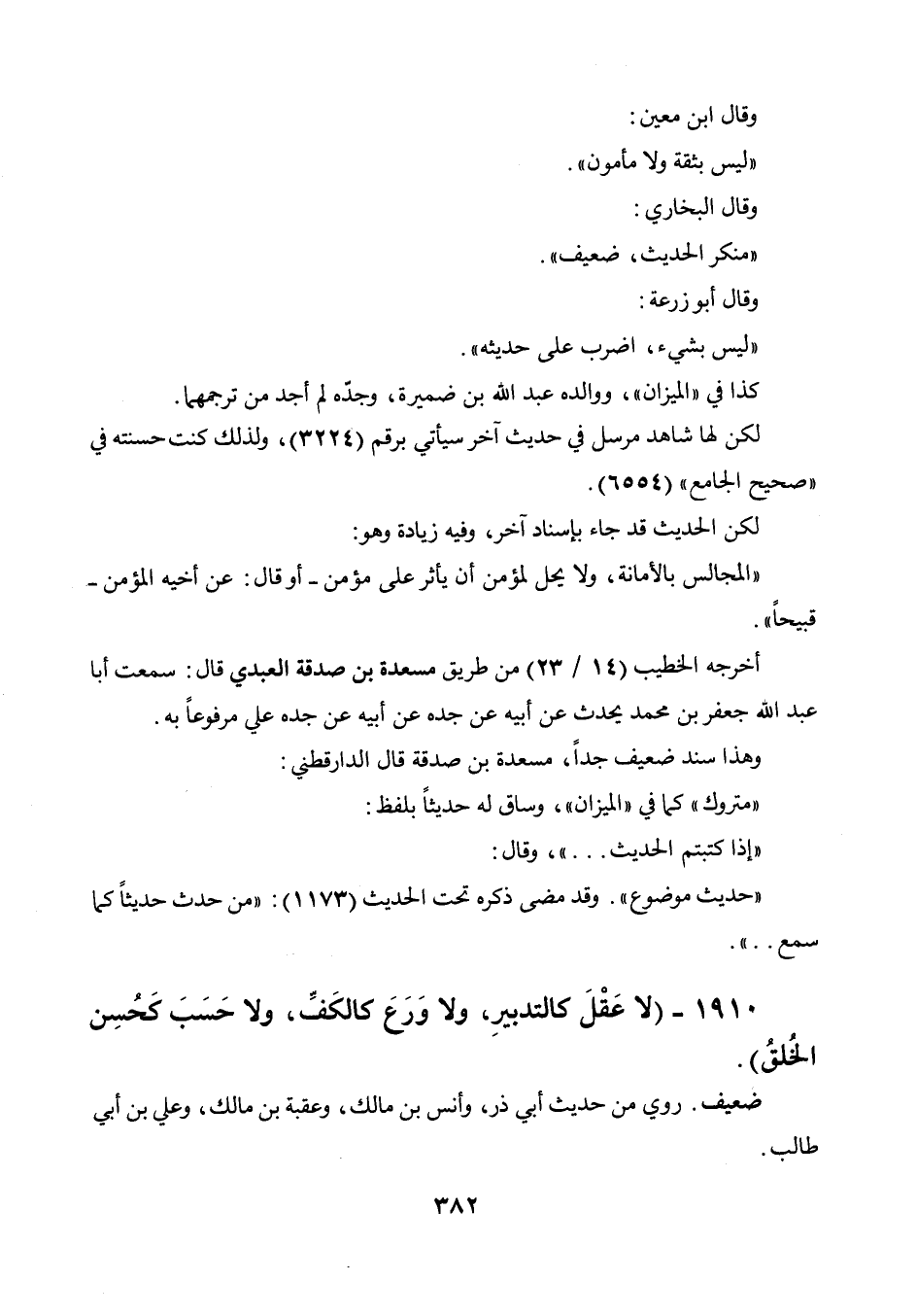 1910 - " لا عقل كالتدبير، ولا ورع كالكف، ولا حسب كحسن الخلق ".