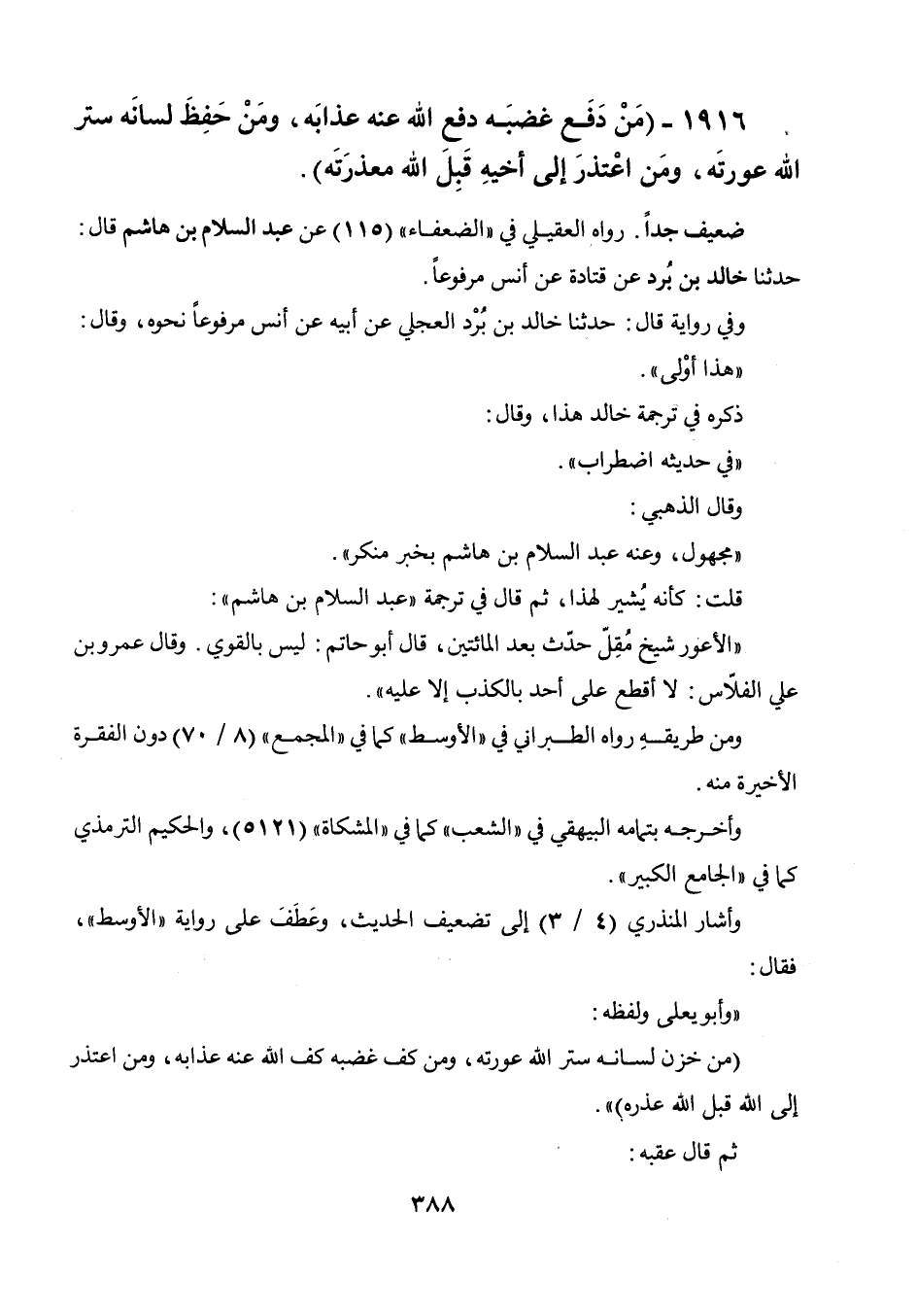 1916 - " من دفع غضبه دفع الله عنه عذابه، ومن حفظ لسانه ستر الله عورته، ومن اعتذر إلى أخيه قبل الله معذرته ".