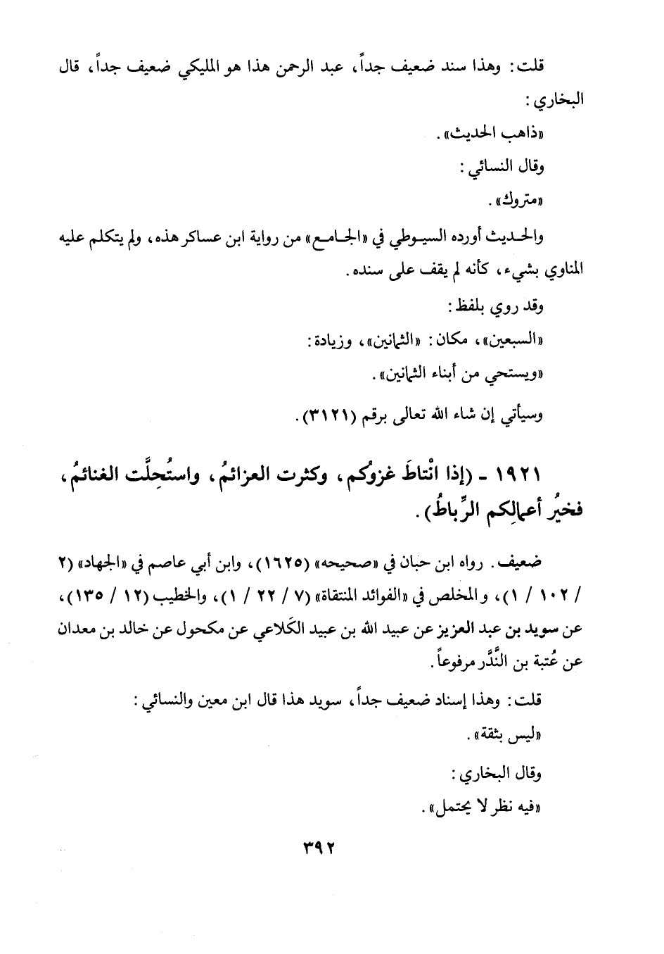 1921 - " إذا إنتاط غزوكم وكثرت العزائم واستحلت الغنائم، فخير أعمالكم الرباط ".