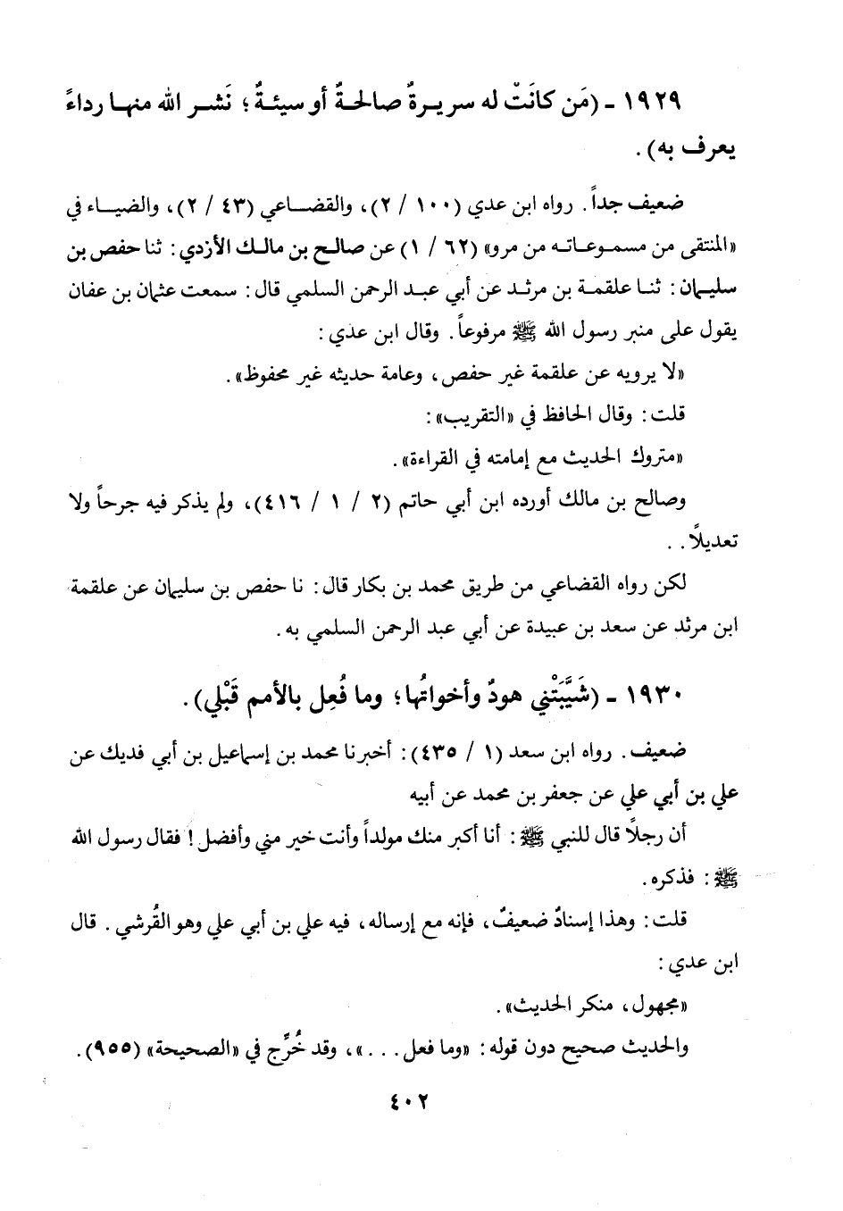 علي وهو القرشي. قال ابن عدي: " مجهول، منكر الحديث ". والحديث صحيح دون