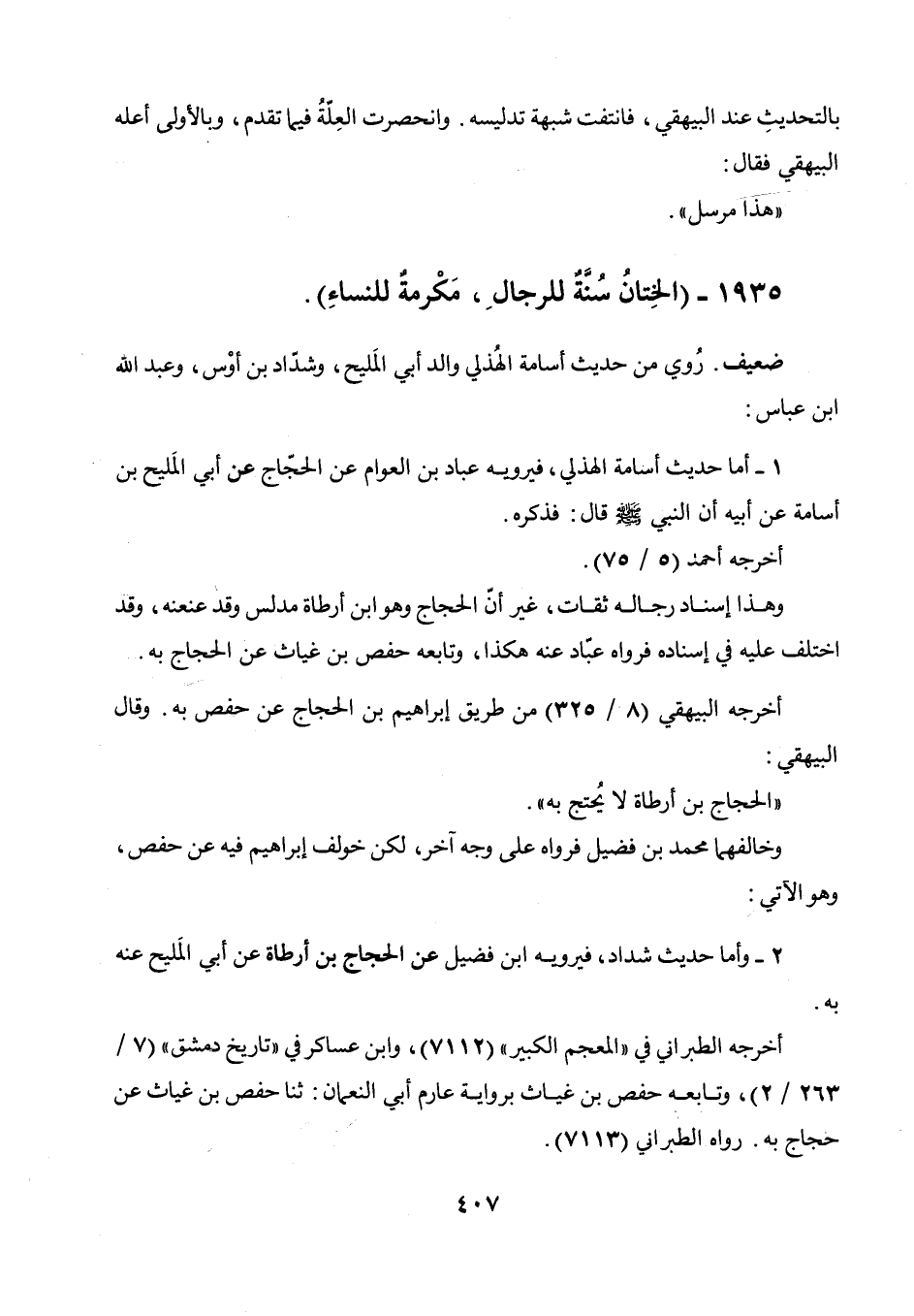 1 - أما حديث أسامة الهذلي، فيرويه عباد بن العوام عن الحجاج