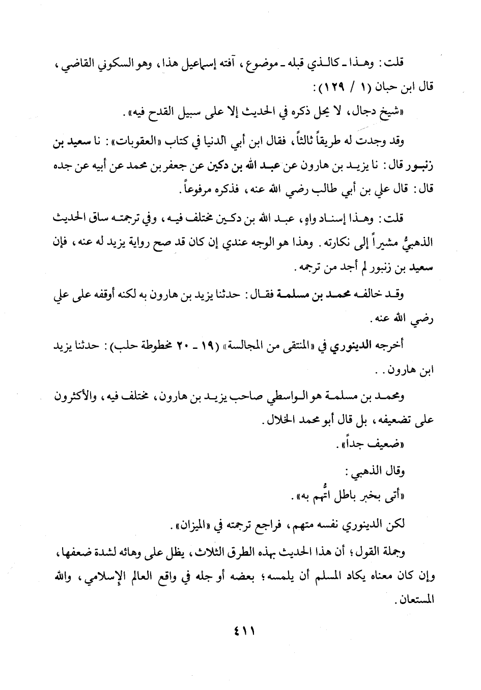 والأكثرون على تضعيفه، بل قال أبو محمد الخلال. " ضعيف جدا ". وقال الذهبي