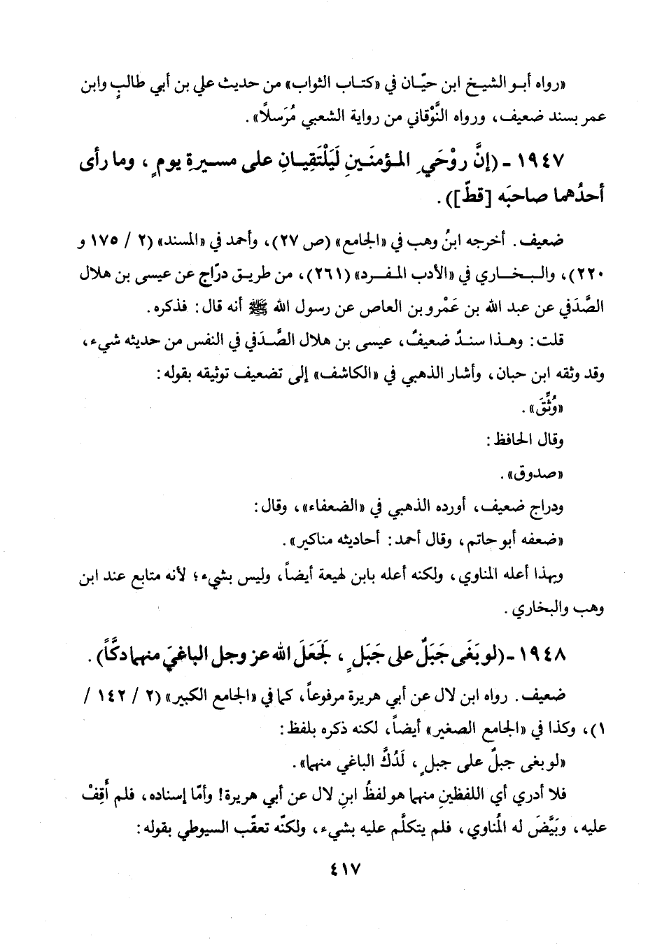 1947 - " إن روحي المؤمنين ليلتقيان على مسيرة يوم، وما رأى أحدهما صاحبه (قط) ".