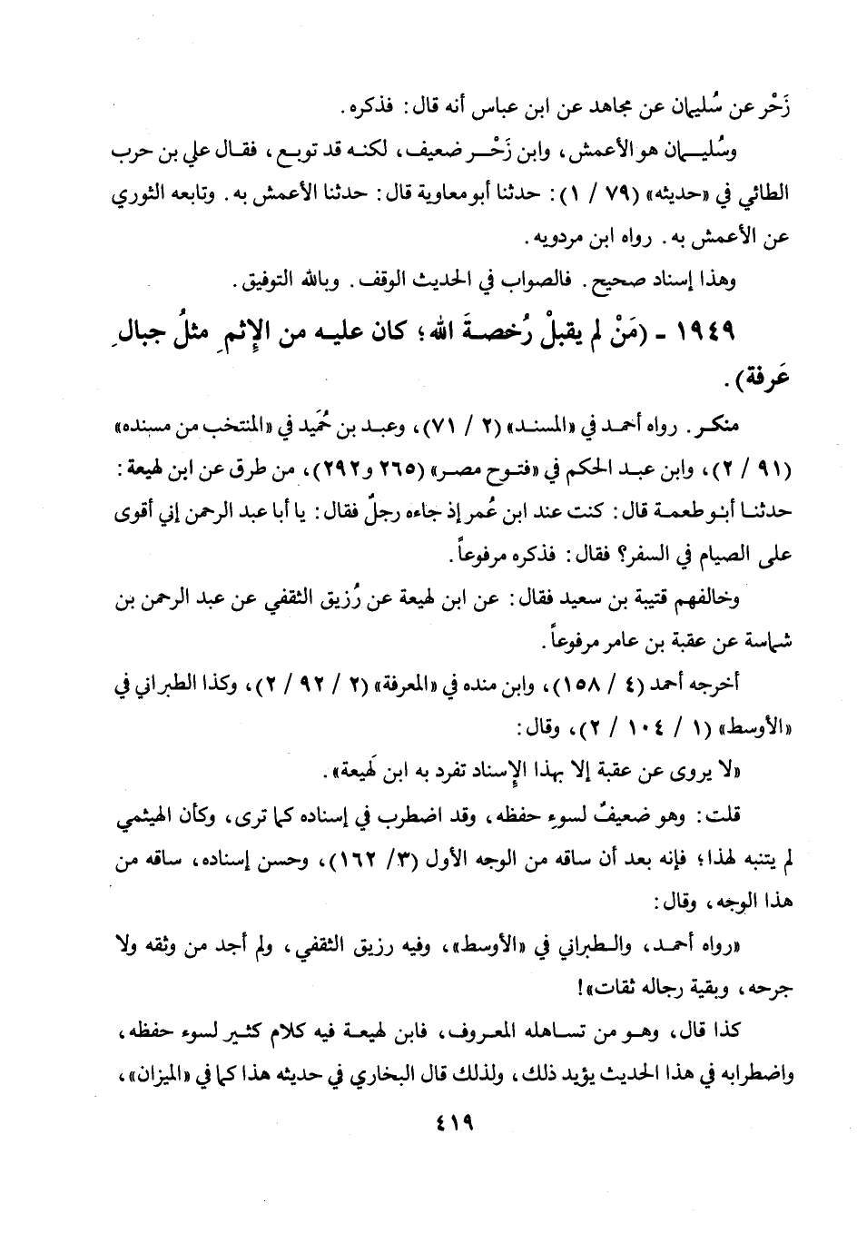1949 - " من لم يقبل رخصة الله كان عليه من الإثم مثل جبال عرفه ".
