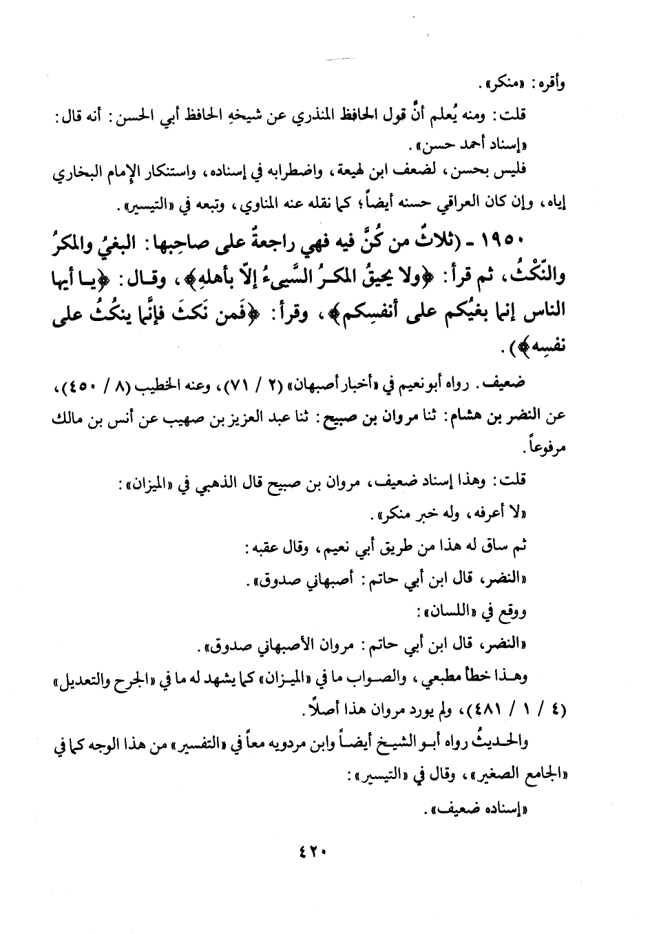 1950 - " ثلاث من كن فيه فهي راجعة على صاحبها: البغي والمكر والنكث، ثم قرأ "