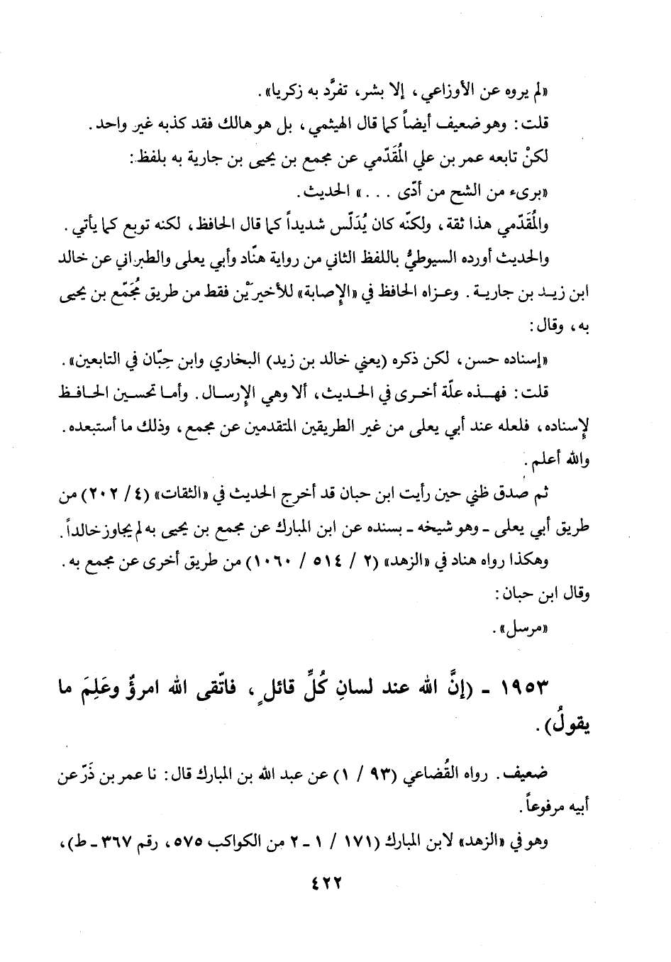 المبارك عن مجمع بن يحيى به لم يجاوز خالدا. وهكذا رواه هناد في " الزهد " (