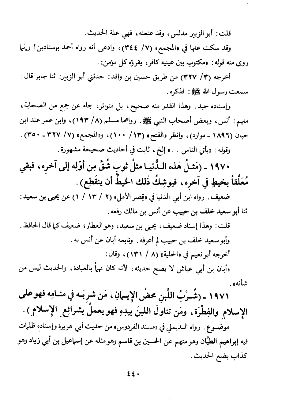 1971 - " شرب اللبن محض الإيمان، من شربه في منامه فهو على الإسلام والفطرة، ومن تناول اللبن بيده فهو يعمل بشرائع الإسلام ".