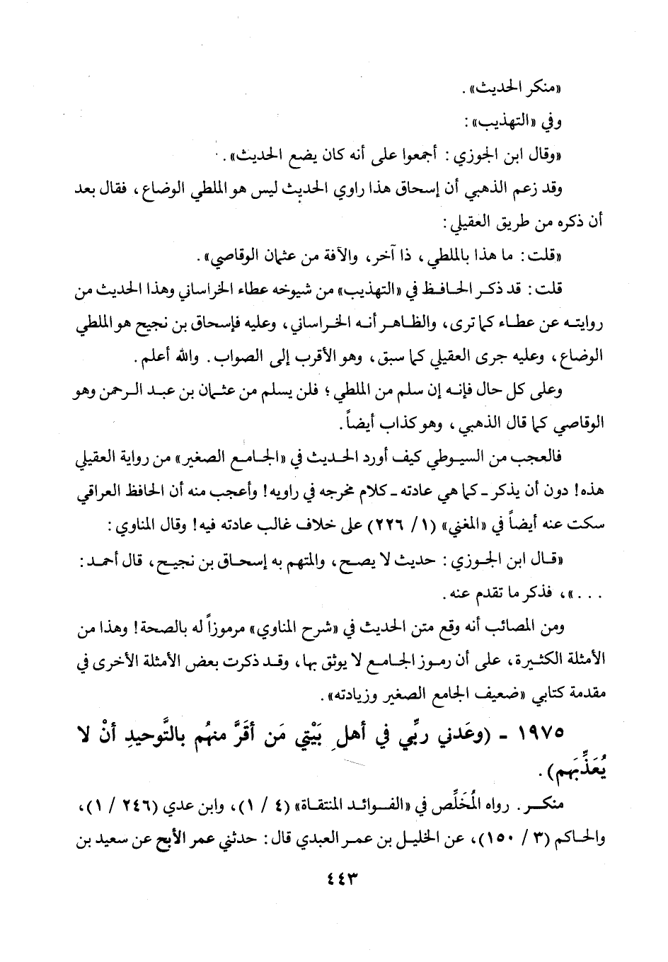 1975 - " وعدني ربي في أهل بيتي من أقر منهم بالتوحيد أن لا يعذبهم ".