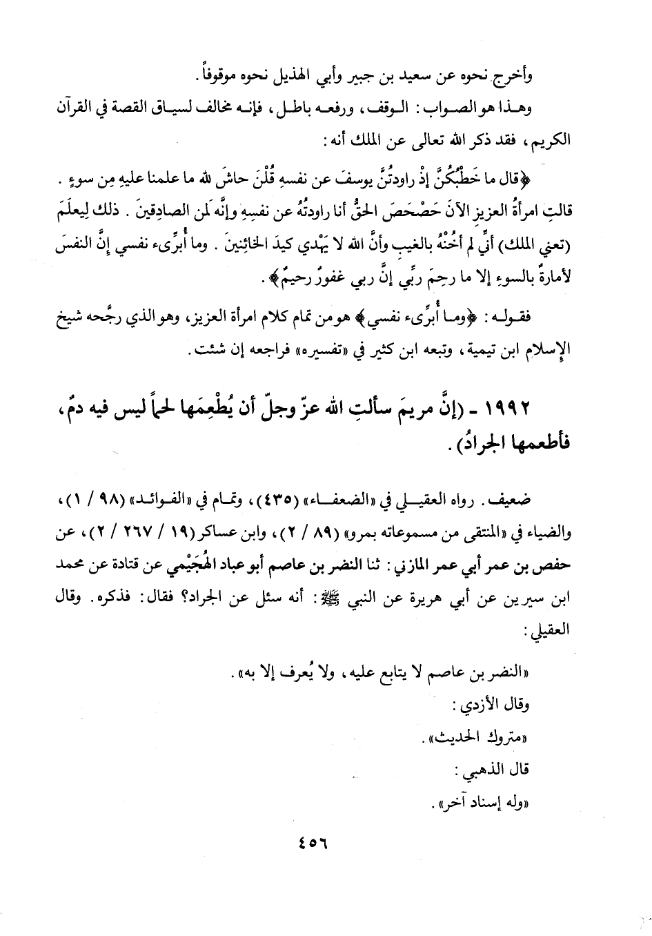 1992 - " إن مريم سألت الله عز وجل أن يطعمها لحما ليس فيه دم، فأطعمها الجراد ".