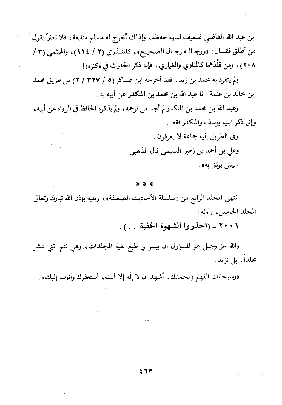 انتهى المجلد الرابع من " سلسلة الأحاديث الضعيفة والموضوعة وأثرها السيء في الأمة ".