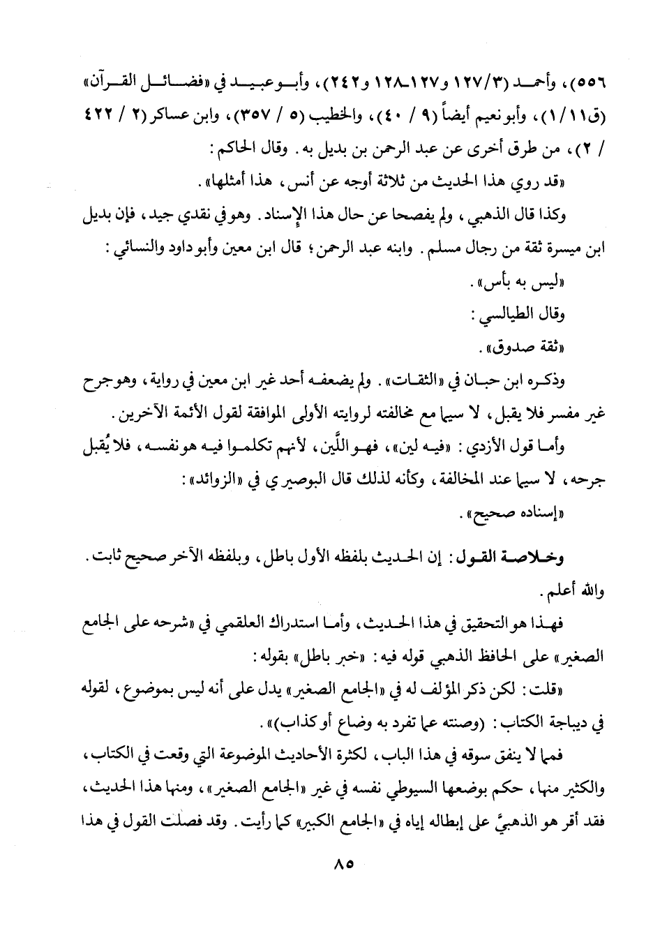 وخلاصة القول: إن الحديث بلفظه الأول باطل، وبلفظه الآخر صحيح ثابت. والله أعلم. فهذا هو التحقيق في هذا الحديث، وأما استدارك العلقمي في " شرحه على الجامع الصغير " على الحافظ الذهبي قوله فيه: " خبر