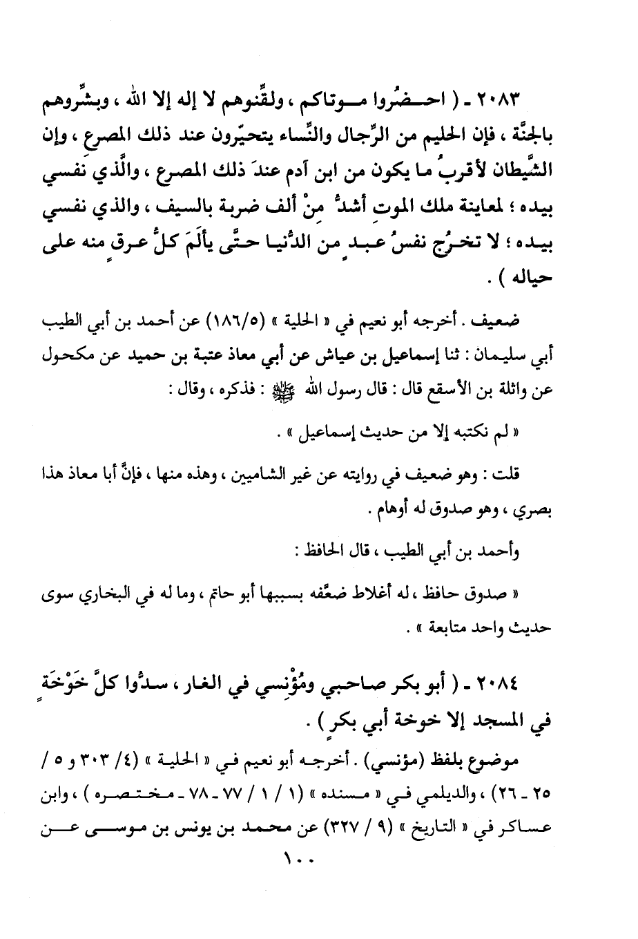 2084 - " أبو بكر صاحبي ومؤنسي في الغار، سدوا كل خوخة في المسجد إلا خوخة أبي بكر ".