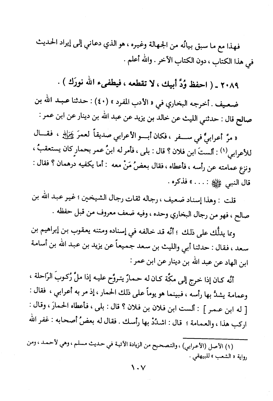 للأعرابي (1) : ألست ابن فلان؟ قال: بلى، فأمر له ابن عمر بحمار كان يستعقب