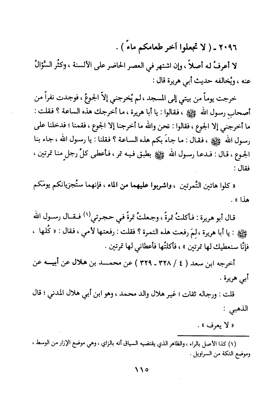 2096 - " لا تجعلوا آخر طعامكم ماء ".