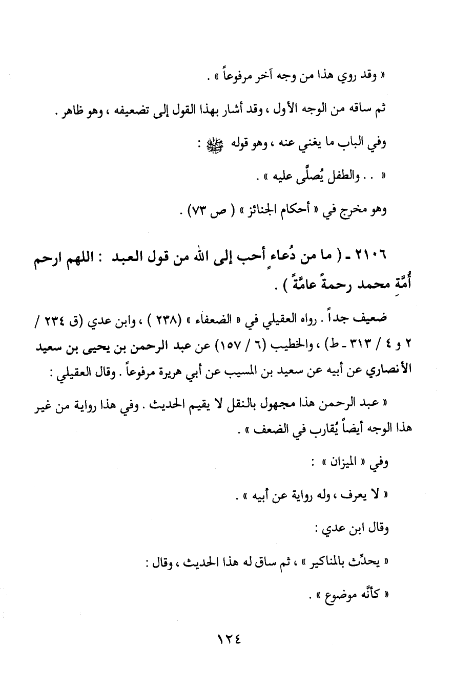 2106 - " ما من دعاء أحب إلى الله من قول العبد: اللهم ارحم أمة محمد رحمة عامة ".