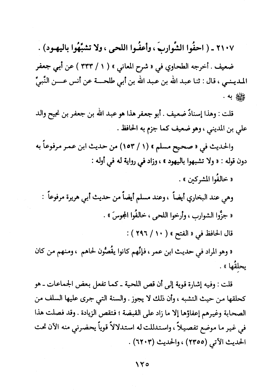 2107 - " احفوا الشوارب، وأعفوا اللحى، ولا تشبهو اباليهو د ".