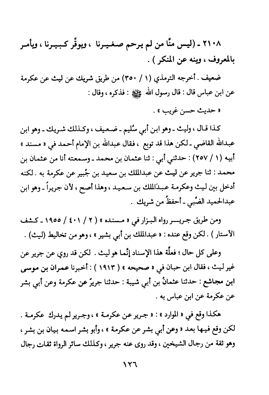 2108 - " ليس منا من لم يرحم صغيرنا، ويوقر كبيرنا، ويأمر بالمعروف، وينه عن