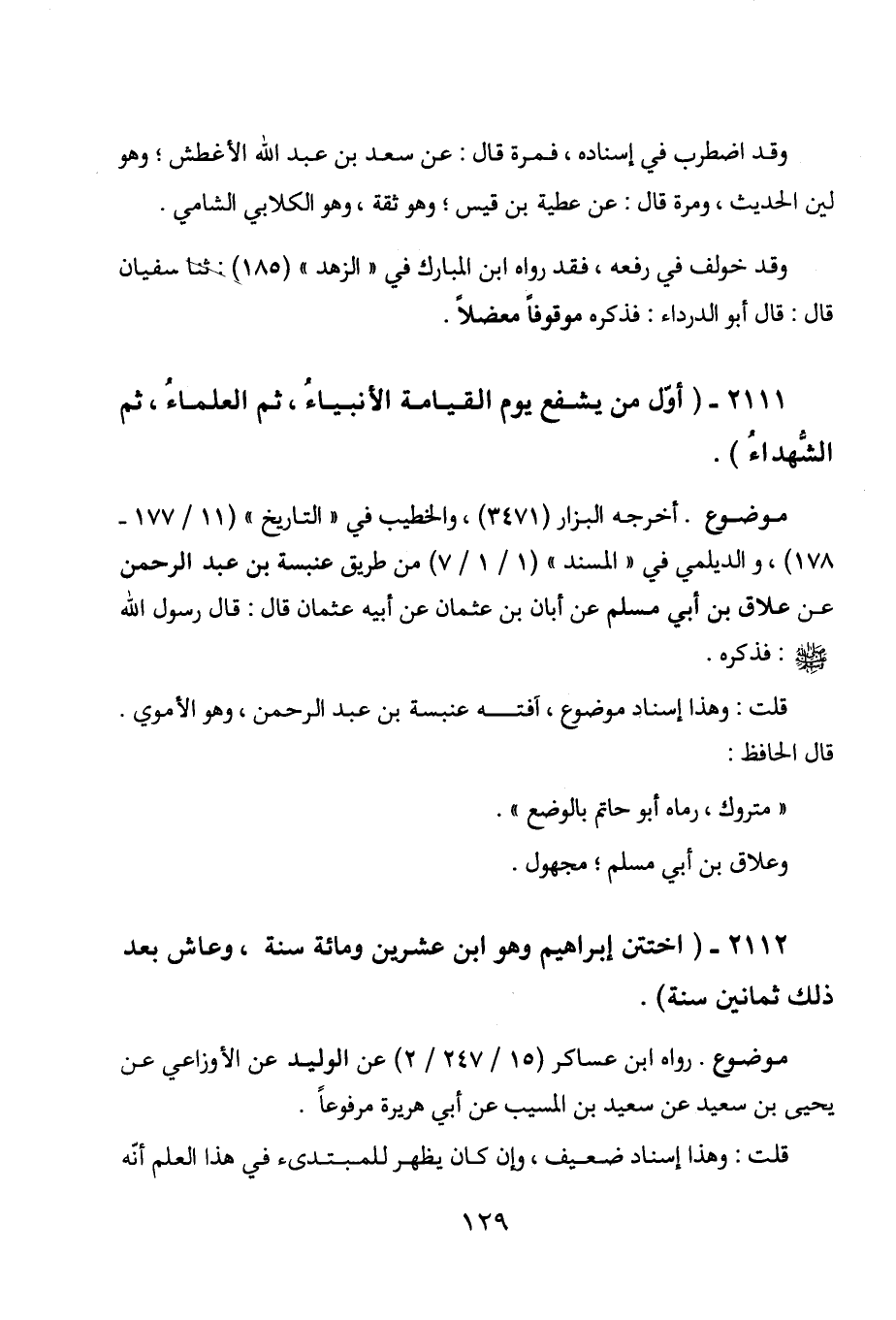 2111 - " أول من يشفع يوم القيامة الأنبياء، ثم العلماء، ثم الشهداء ".