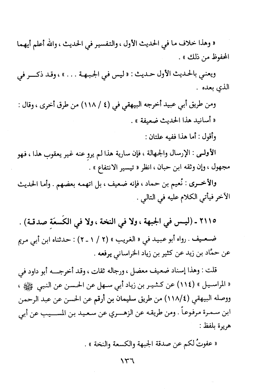 2115 - " ليس في الجبهة، ولا في النخة، ولا في الكسعة صدقة ".