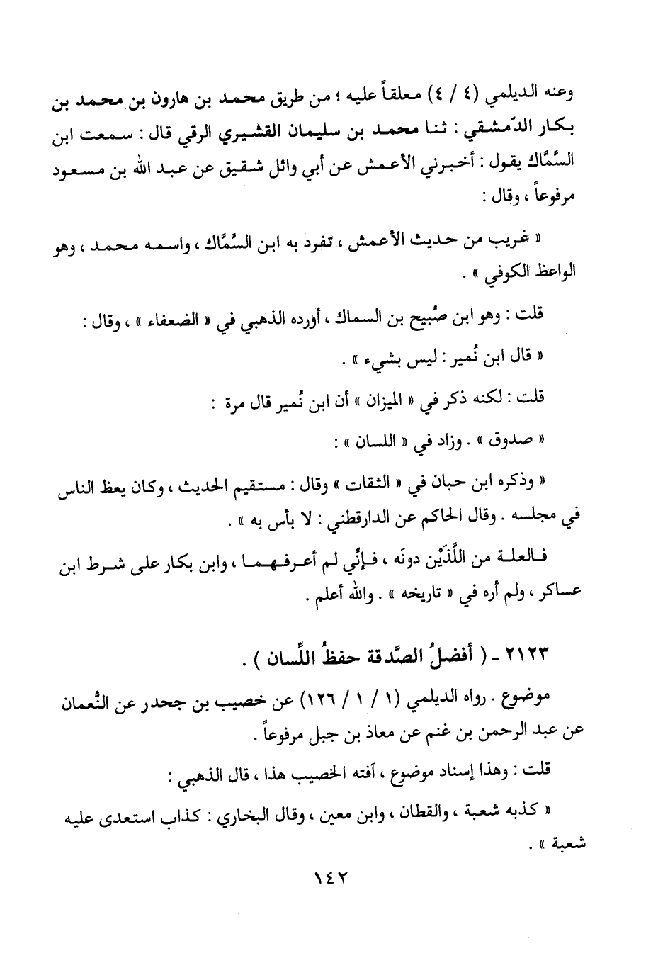 2123 - " أفضل الصدقة حفظ اللسان ".