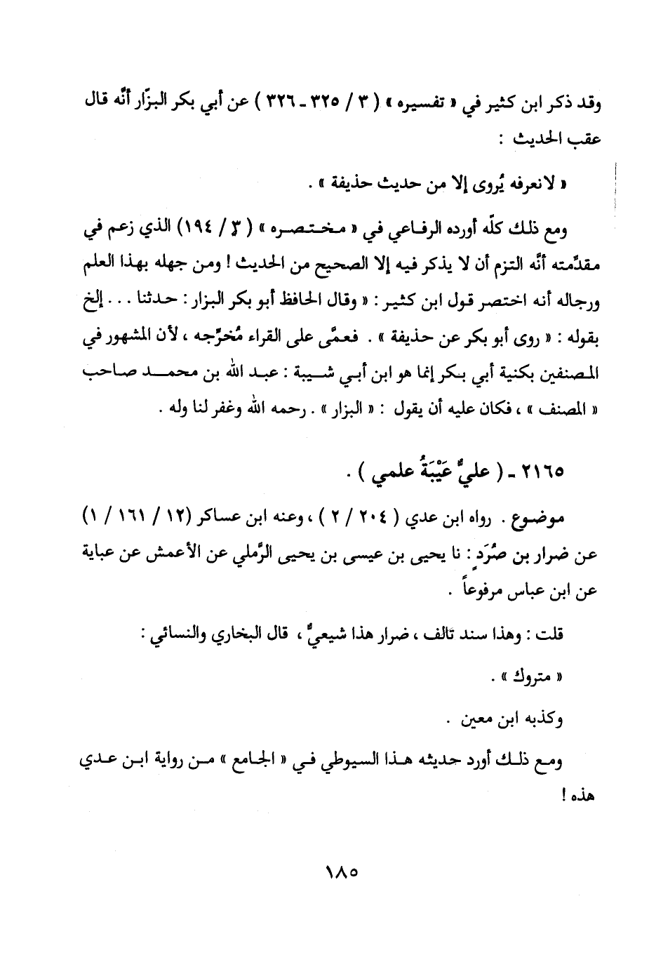 قلت: وهذا سند تالف، ضرار هذا شيعي، قال البخاري والنسائي:
