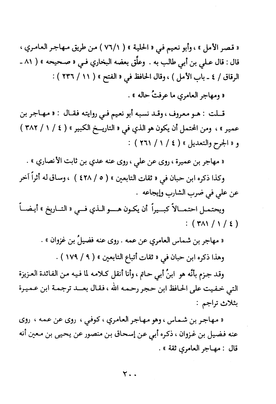 " مهاجر بن شماس، وهو مهاجر العامري، كوفي، روى عن عمه، روى عنه فضيل بن