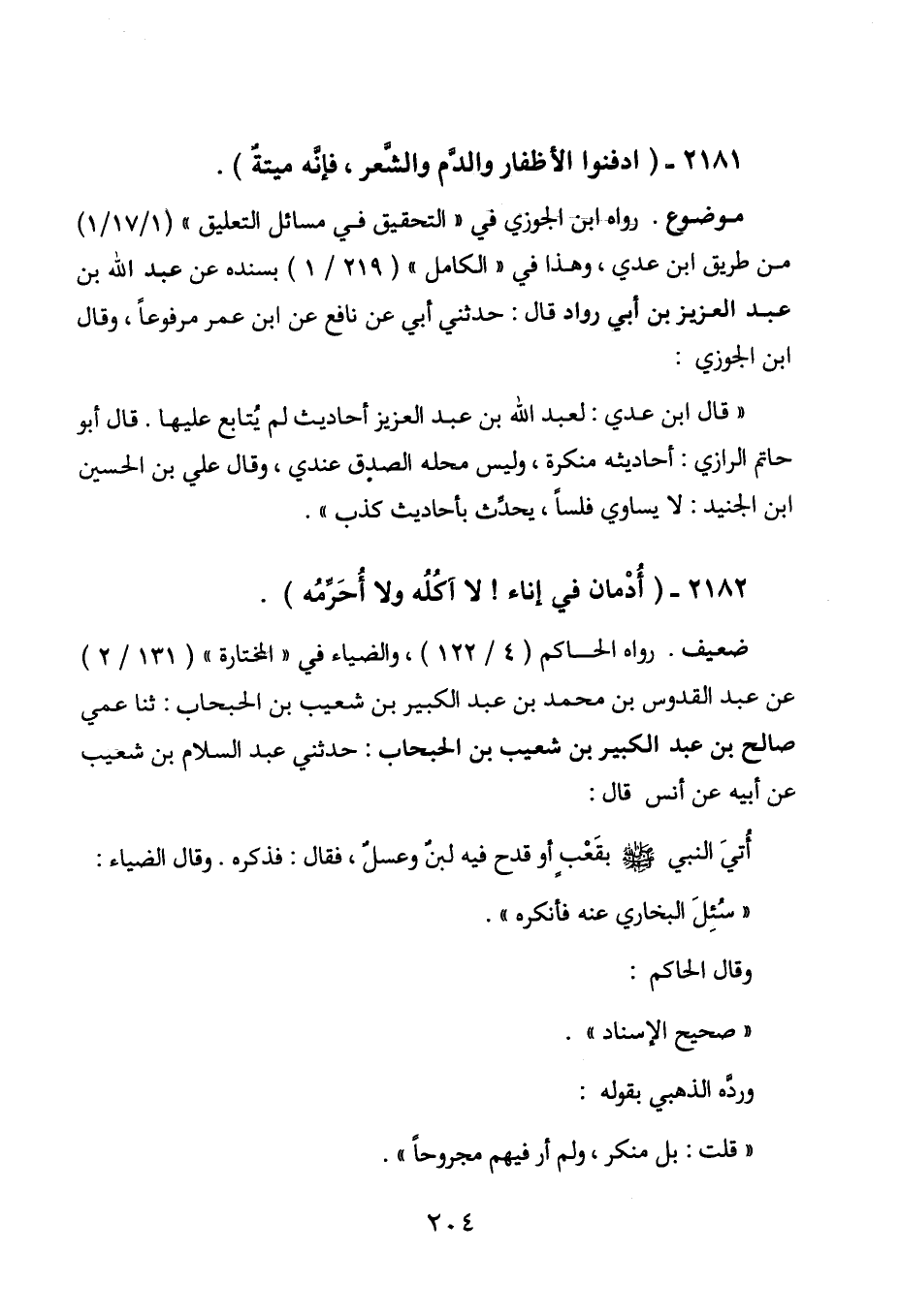 2181 - " ادفنوا الأظفار والدم والشعر، فإنه ميتة ".