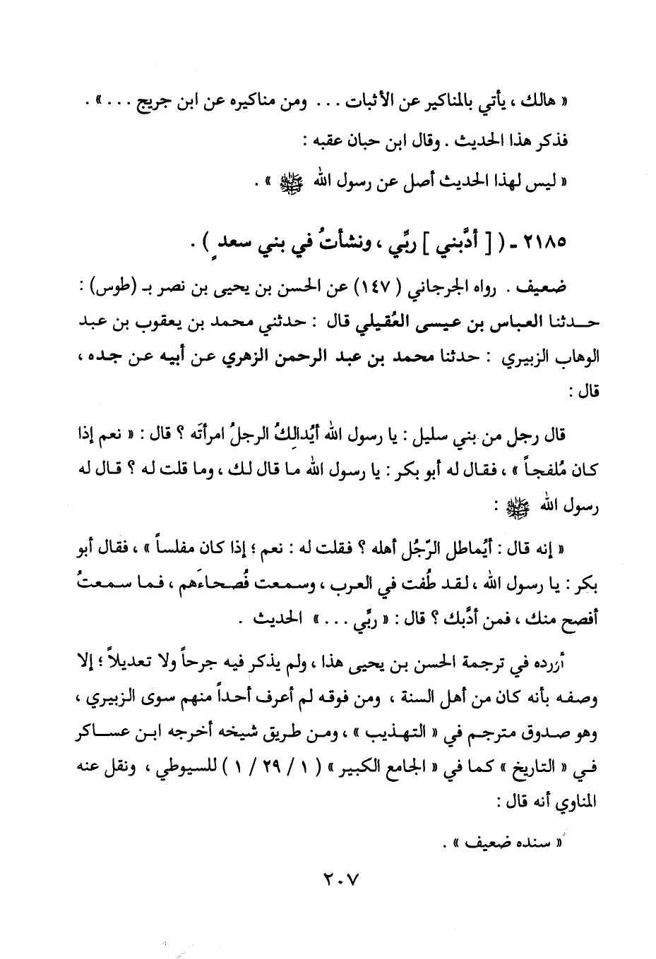2185 - " [أدبني] ربي، ونشأت في بني سعد ".