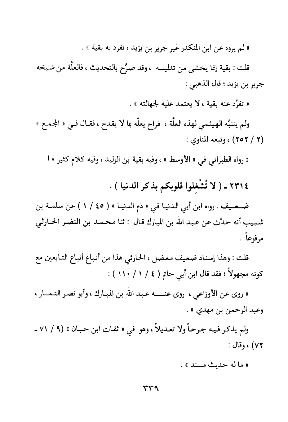قلت: وهذا إسناد ضعيف معضل، الحارثي هذا من أتباع أتباع التابعين مع كونه