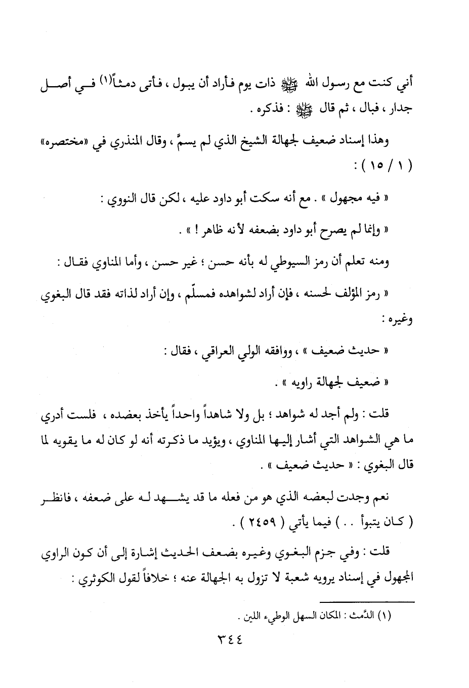 قلت: وفي جزم البغوي وغيره بضعف الحديث إشارة إلى أن كون الراوي المجهول في