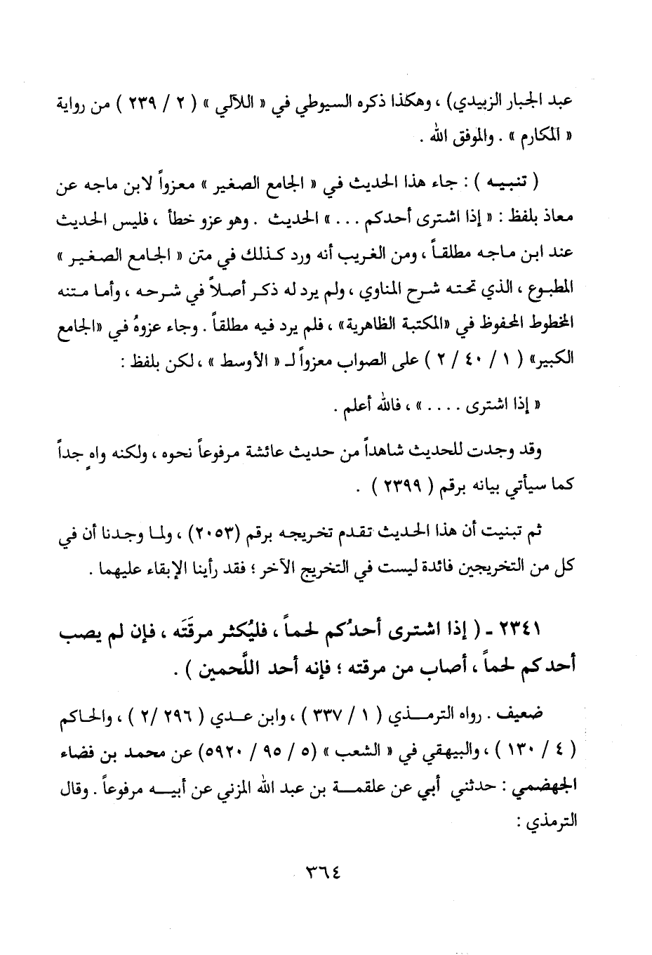 2341 - " إذا اشترى أحدكم لحما، فليكثر مرقته، فإن لم يصب أحدكم لحما، أصاب من