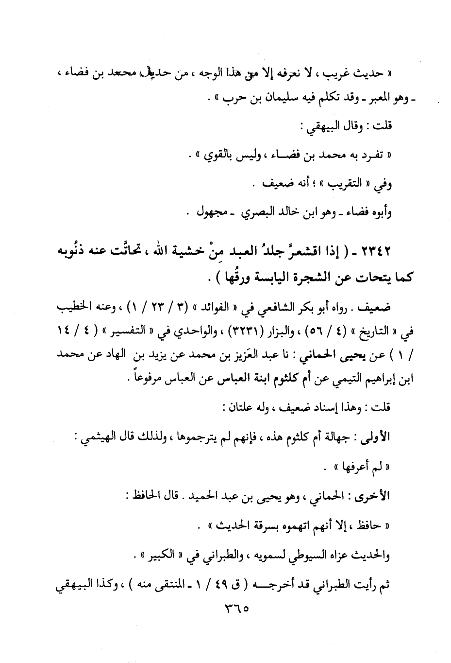 2342 - " إذا اقشعر جلد العبد من خشية الله، تحاتت عنه ذنوبه كما يتحات عن الشجرة