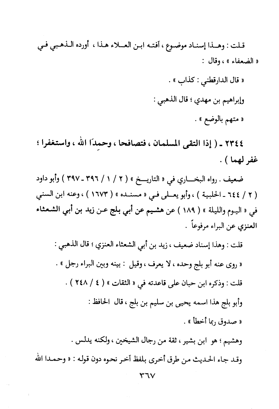 2344 - " إذا التقى المسلمان، فتصافحا، وحمدا الله، واستغفرا؛ غفر لهما ".