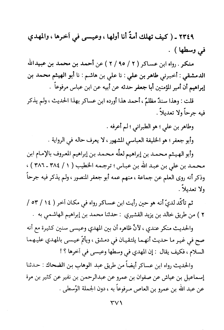 2349 - " كيف تهلك أمة أنا أولها، وعيسى آخرها، والمهدي في وسطها ".