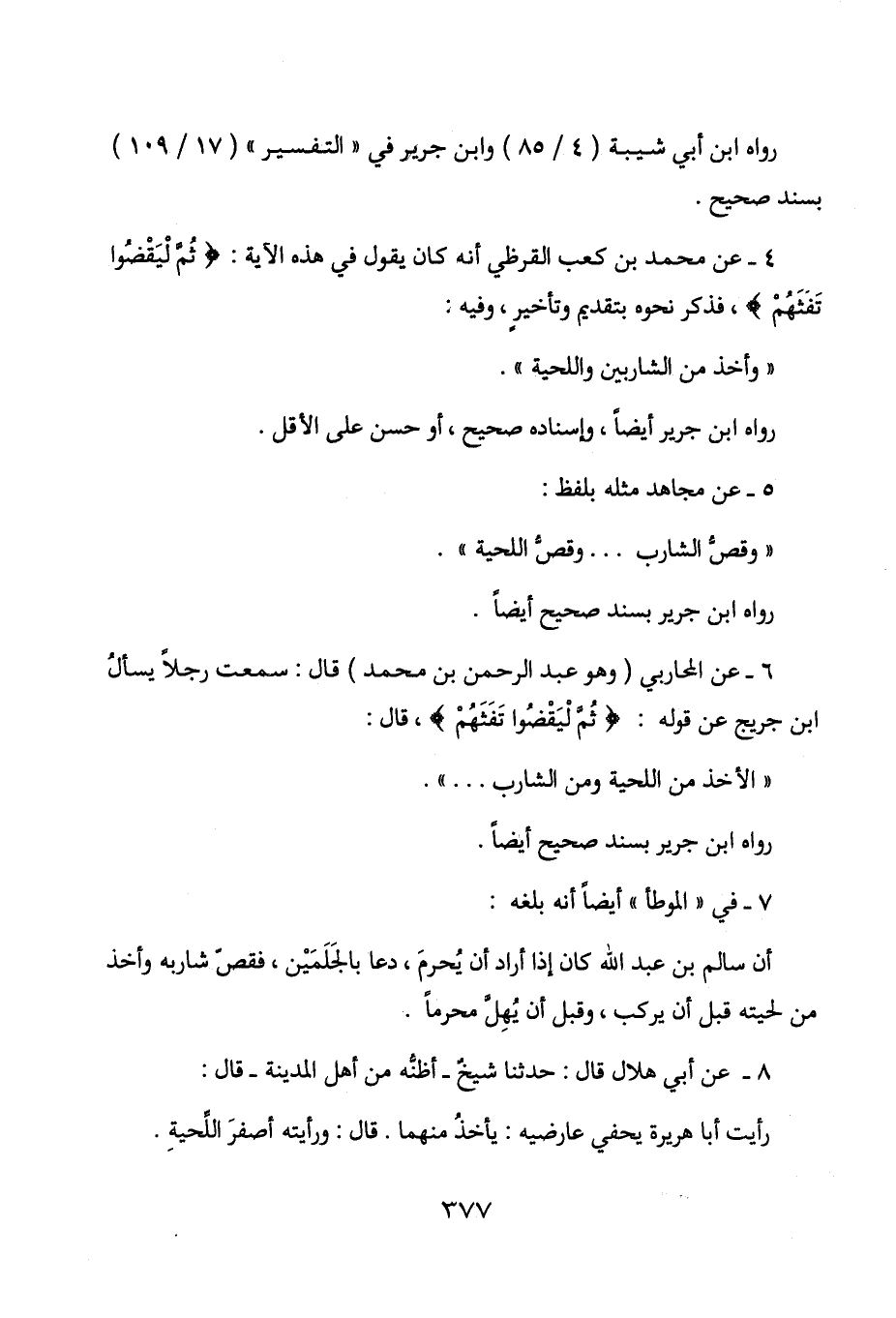4 - عن محمد بن كعب القرظي أنه كان يقول في هذه الآية: " ثم ليقضوا تفثهم "