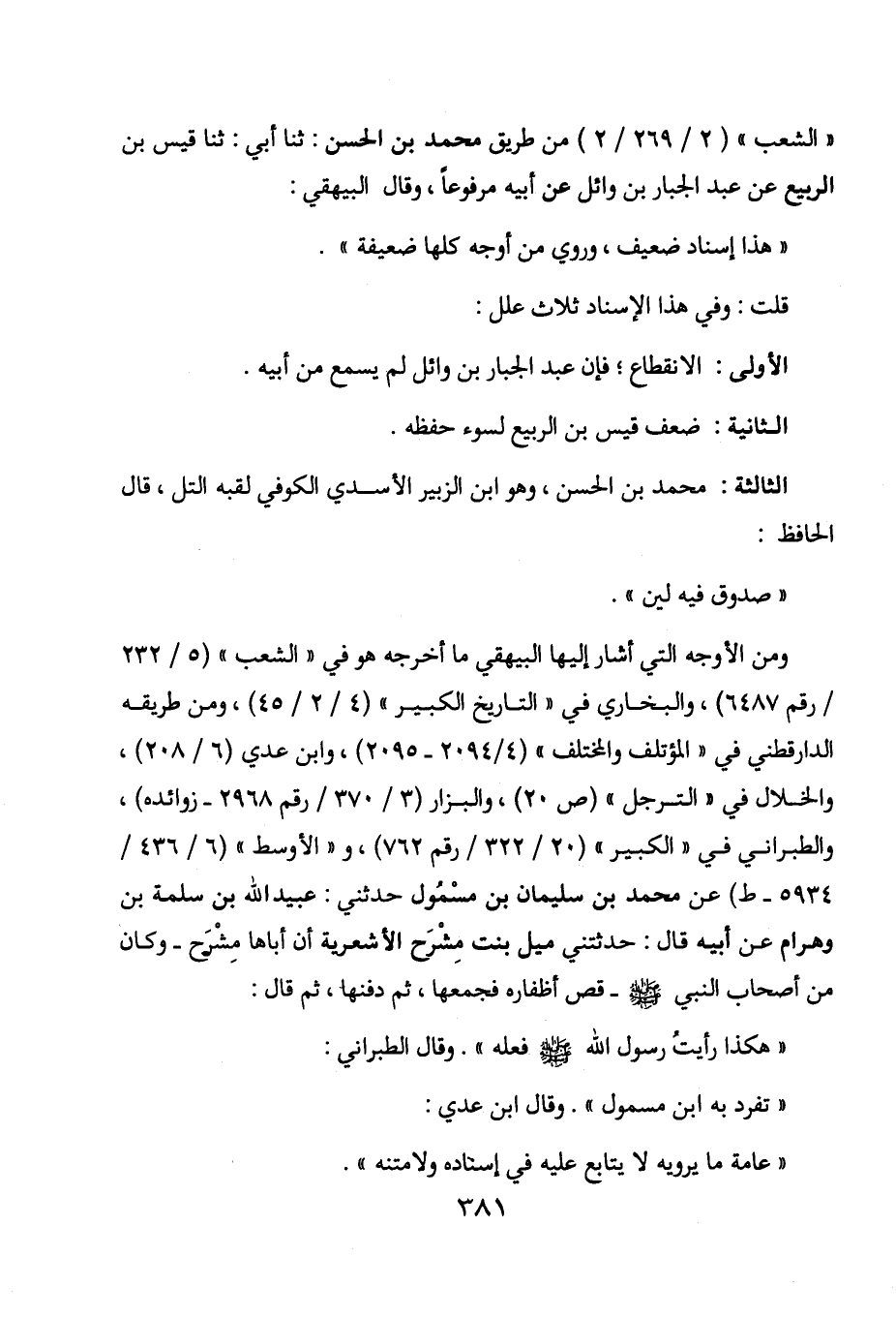 " الشعب " (2/269/2) من طريق محمد بن الحسن: حدثنا أبي: حدثنا قيس بن الربيع عن عبد الجبار بن