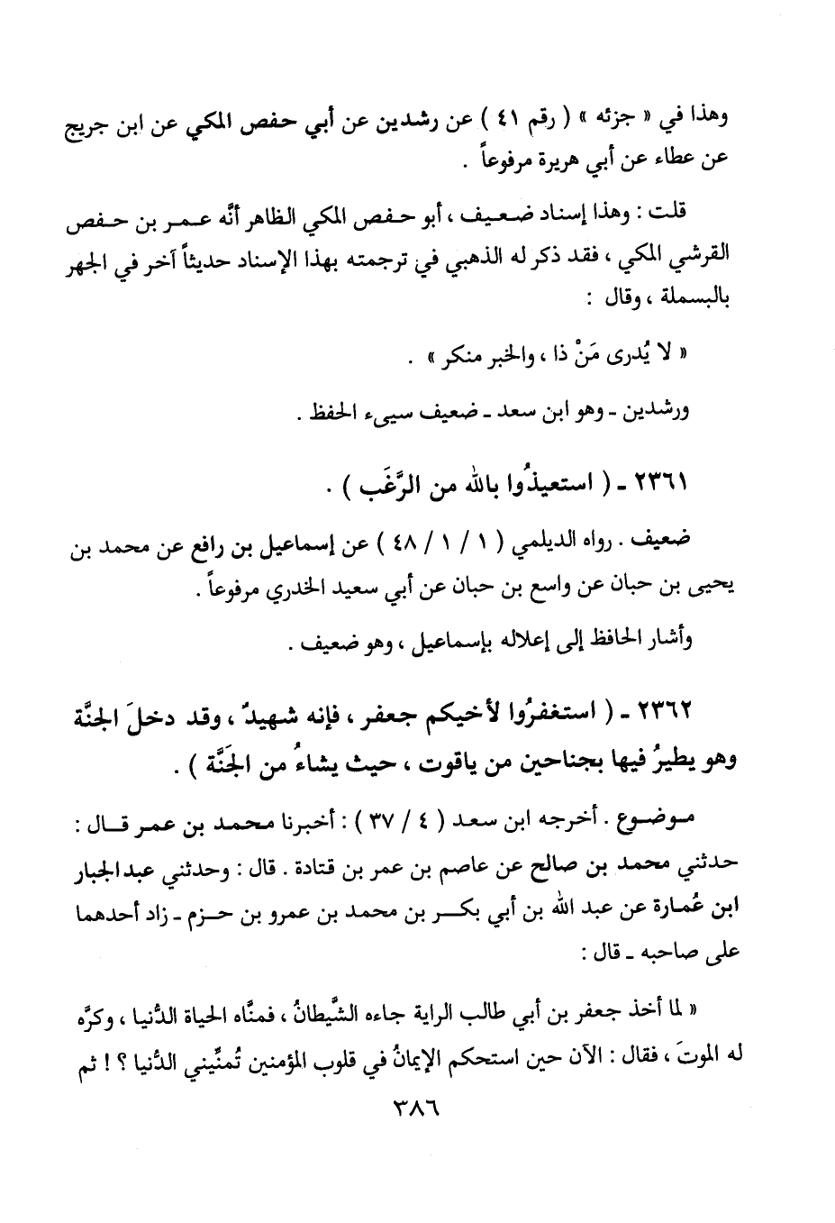 2362 - " استغفروا لأخيكم جعفر، فإنه شهيد، وقد دخل الجنة وهو يطير فيها بجناحين