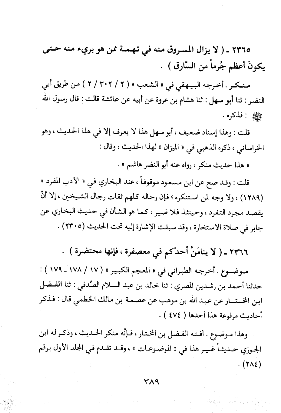 2365 - " لا يزال المسروق منه في تهمة ممن هو بريء منه حتى يكون أعظم جرما من السارق ".